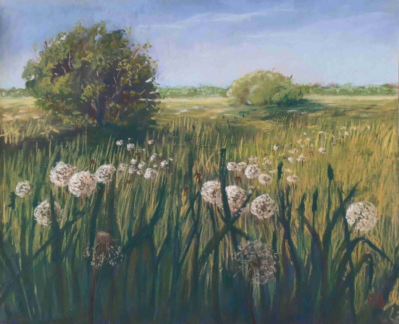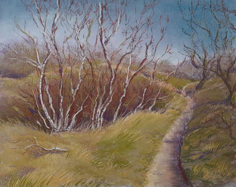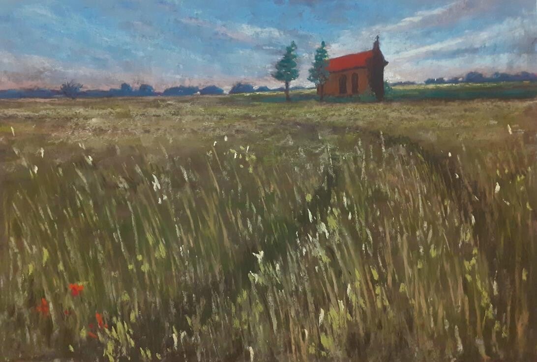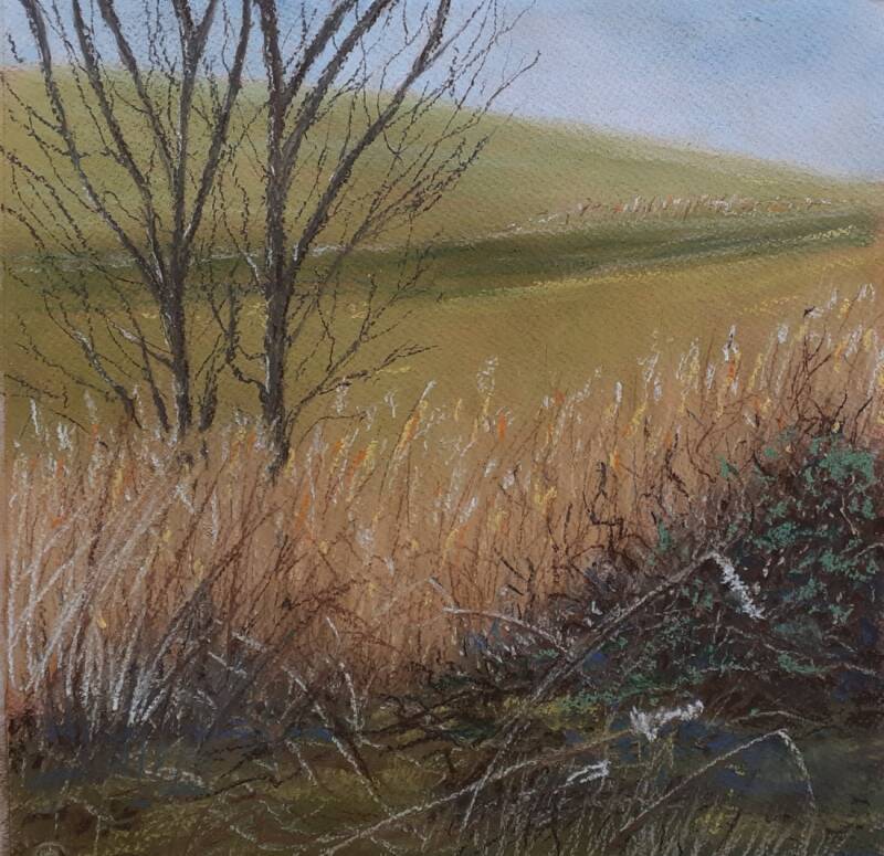 Pastelkrijt op aquarelpapier met onderschildering in aquarel.
