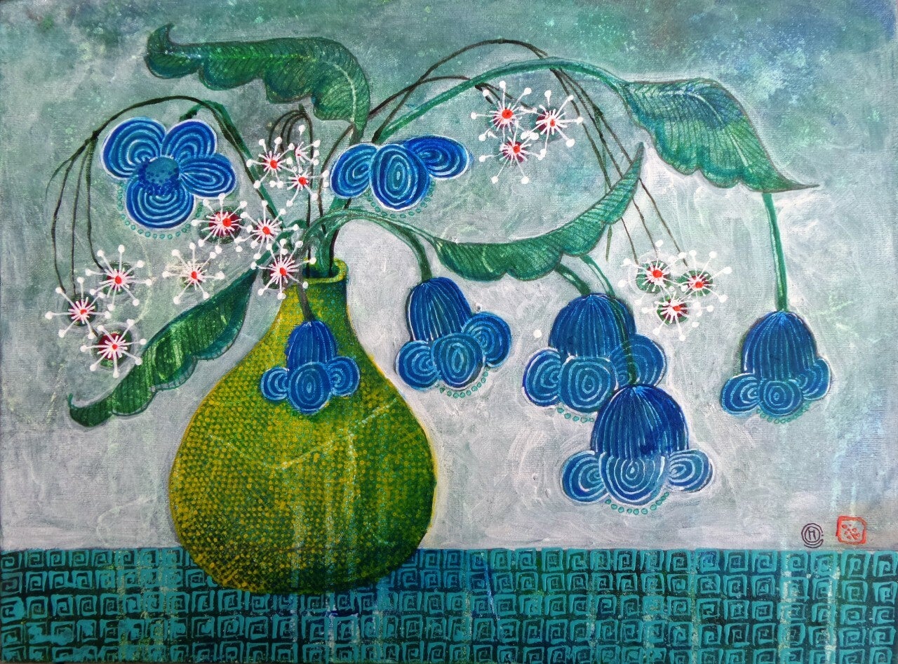 schilderkarton op frame 30/40 cm. negatieve schildertechnieken 2017